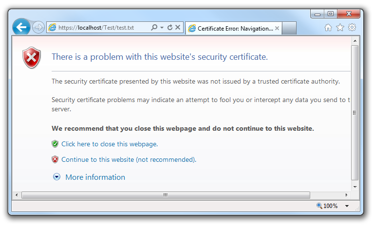 Screenshot of a certificate warning in IE7