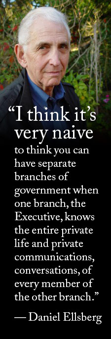The administration keeps on attempting to justify the NSA spying by claiming there is oversight from the other branches of government. But, as Pentagon Papers whistleblower Daniel Ellsberg noted in the Why Care About NSA Spying video, spying makes a mockery of that separation. How can that oversight be meaningful if the NSA's huge storehouse of information contains the private viewing habits of every senator, representative, and judge? When the only protection against abuse is internal policies, there is no serious oversight. Congress needs to take action now to rein in the spying.