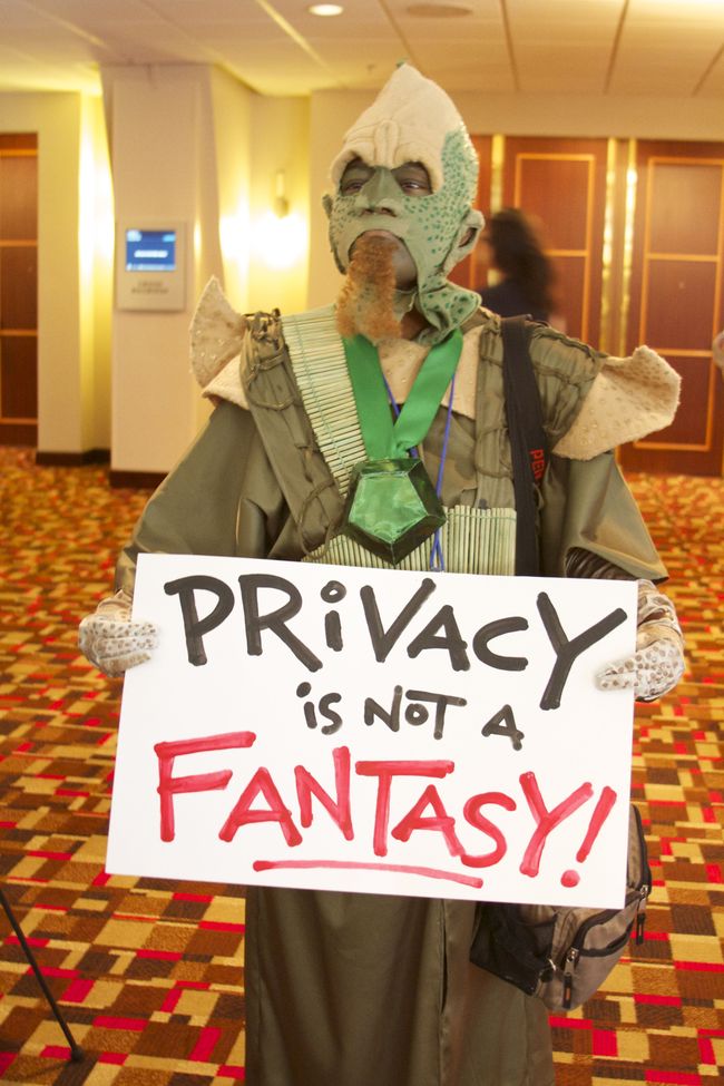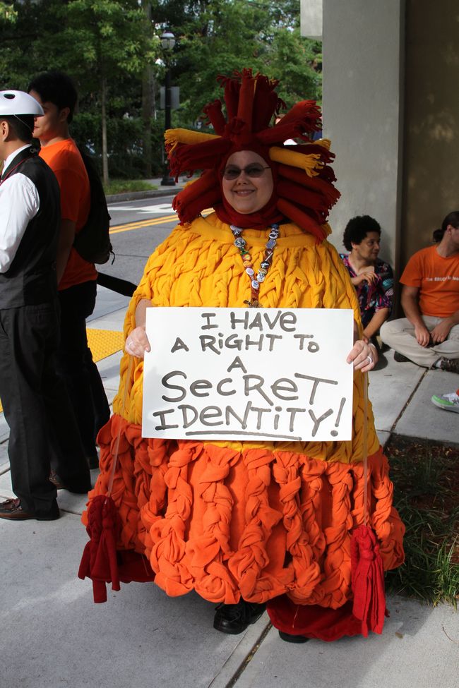 It was all part of Project Secret Identity, a cross-fandom activism campaign organized by EFF, io9, the Southeastern Browncoats, the Harry Potter Alliance, the Baker Street Babes, Wattpad and the Organization for Transformative Works. Even avatars from virtual worlds organized a march online in solidarity.