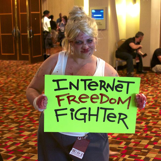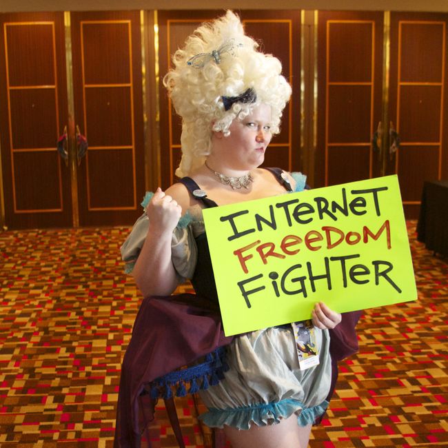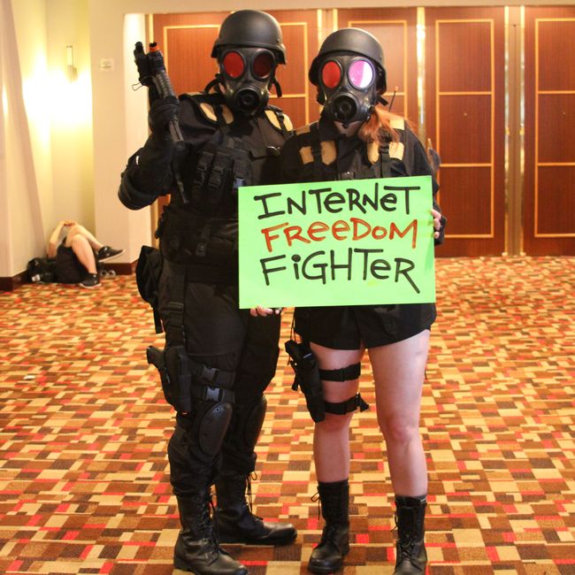 Over Labor Day weekend, more than 75 cosplayers at Dragon Con became Internet freedom heroes for real, using their fantastic costumes to highlight how anonymity and privacy are crucial to free expression.