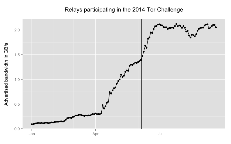 Special thanks to Dr. Karsten Loesing of the Tor Project for making these awesome graphs of the challenge.
