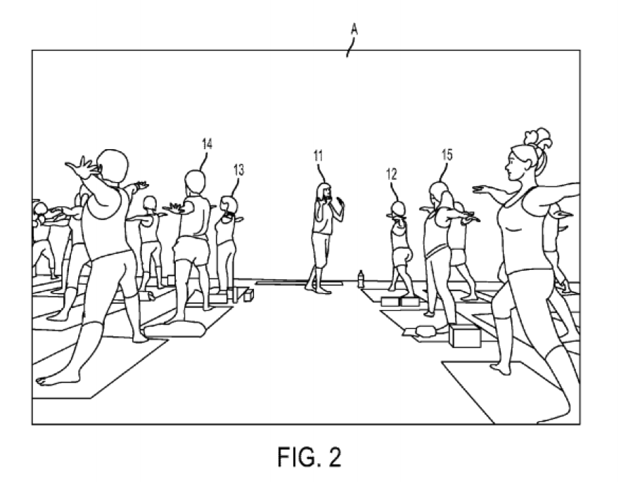 U.S. Patent No. 8,605,152 claims to cover a “method and apparatus for yoga class imaging and streaming.” To be clear, the patent involves slightly more than just filming a class, but not much. The claims require, among other things, “a studio having a front area and a rear area,” “a line of sight corridor,” and an “image capturing device” at a “height of about three feet.” In non-patent speak: a room, a direct view of the instructor, and a camera positioned about three feet above the ground. Figure 2 from the patent, shown below, is described as “an embodiment of the present invention,” and shows all the elements of the claimed “invention.”