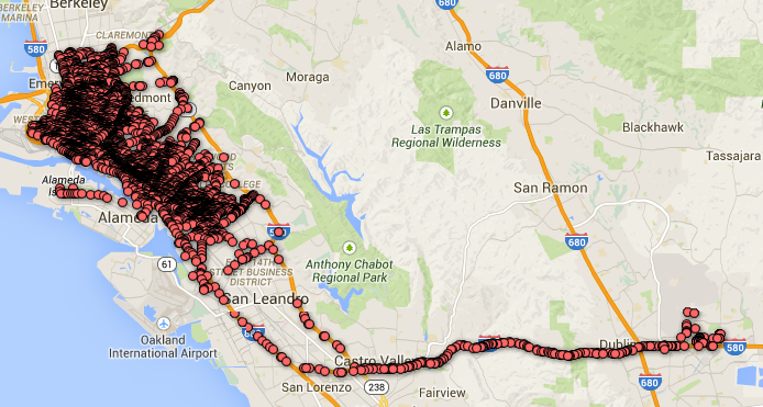 Oaklanders aren't the only citizens who should be worried about OPD surveillance. The ALPR data we received also contained instances of ALPR collection outside Oakland's city limits.