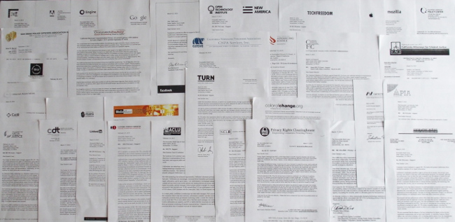 - Privacy and civil liberties groups: ACLU, Privacy Rights Clearinghouse, Electronic Frontier Foundation, Center for Democracy and Technology, Tech Freedom, and Restore the Fourth