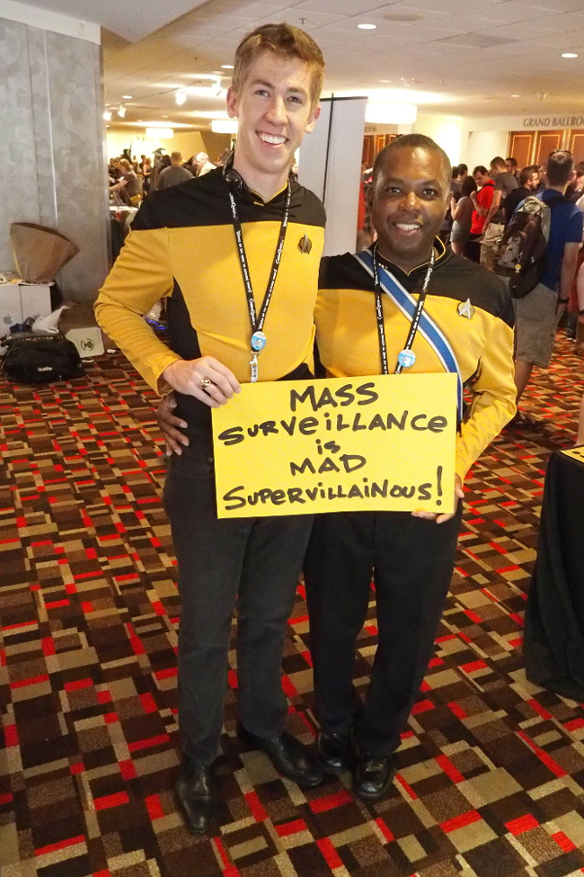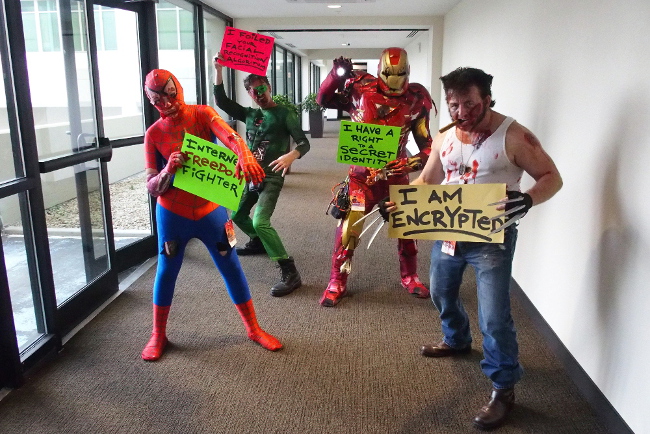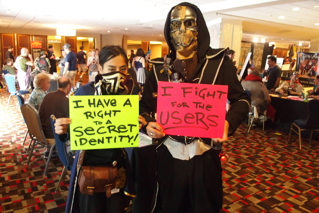 More than 120 cosplayers posed for privacy and free speech at EFF and Access Now's Project Secret Identity station at Dragon Con. Over the Labor Day weekend, we were visited by Scarecrow and "Weird Al," Marvel Zombies and self-designed Steampunk characters, and heroes and villains from anime and video games—all with a common interest in defending Internet freedom.