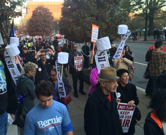 We were out on the streets this week to march against the Trans-Pacific Partnership (TPP) agreement in the U.S. Capitol. We were there to demonstrate the beginning of a unified movement of diverse organizations calling on officials to review and reject the deal based on its substance, which we can finally read and dissect now that the final text is officially released.