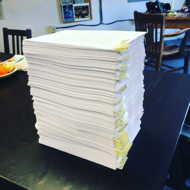 Image of the final, officially-released version of the TPP agreement printed double-sided, taken at the Public Citizen Access to Medicines office. This photo by Maira Sutton can be reused under CC-BY 4.0