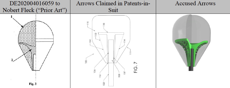 Faced with the massive expense of a patent suit, Gwyther attempted to crowdsource his defense fund. He created a GoFundMe page and YouTube video publicizing his suit and asking for donations. Gwyther is a small U.S. retailer who resells arrows that he buys from a German company. He argues that the patent claims against him are entirely bogus because the arrows he sells were available many years before Global Archery filed its patent application. Gwyther has also filed a motion which illustrates the striking similarity between an old German patent and the Global Archery’s supposed invention. He warns that, if Global Archery is successful against him, it could sue anyone else who supplies similar arrows to the LARP community.
