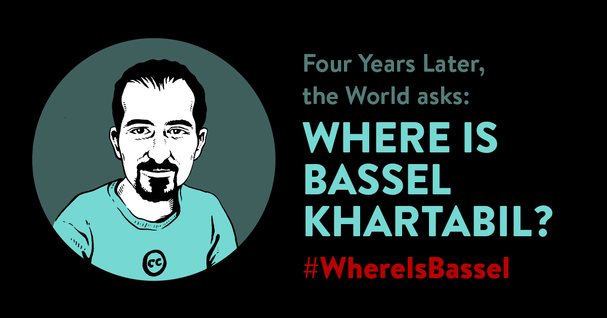 Bassel Khartabil, open source developer, Wikipedian, and free culture advocate, was taken from his friends and family he loves four years ago this week. On March 15, 2012, Bassel was kidnapped from the streets of Damascus by Syrian military intelligence. Since then, we know that he has suffered torture, solitary confinement, arbitrary detention, dangerously overcrowded prison conditions, and even the bombing of his prison’s neighbourhood by Syrian opposition forces.