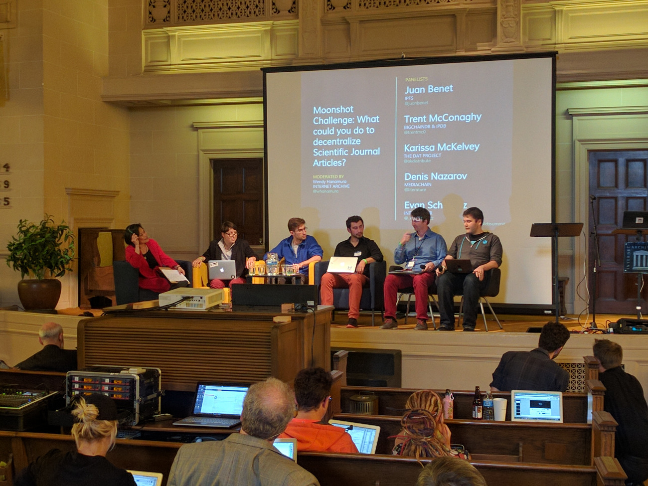 The third panel presented several demos of actual, working decentralized web projects. Juan Benet presented the newest demos from IPFS. Trent McConaghy (BigchainDB & IPDB) and Denis Nazarov (Mediachain) each presented a different tool for making sure artists can get attribution for their work via the decentralized web. Karissa McKelvey showed off the DAT Project and Code for Science, tools which help scientists share research data and their resulting papers. And Evan Schwartz demoed Interledger, a tool for sending money across ledgers the same way theInternet Protocol sends packets across networks.