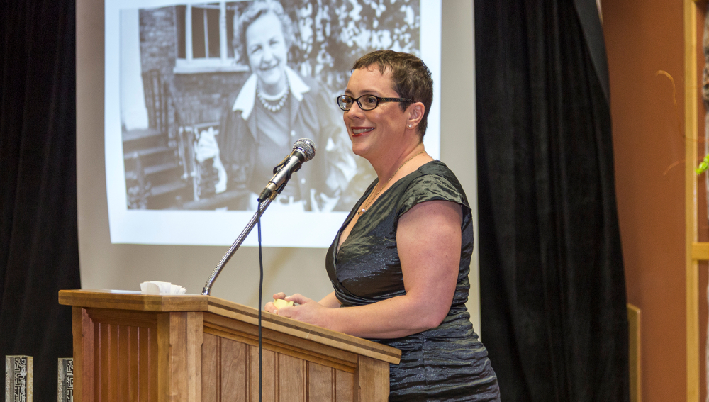 Susan Landau on behalf of "Keys Under Doormats" authors. Photo by Alex Schoenfeldt.