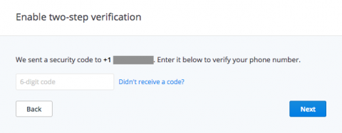 Regardless of the method you chose, you can finish up by choosing an (optional) backup phone number at which you can receive texts if you can’t access your authenticator app or primary phone number.