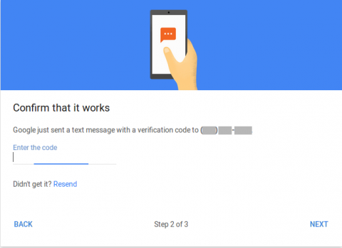 Soon after you click, you should receive a text or call with your code. Enter just the numbers, without the “G-” prefix, and click “Next.”