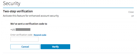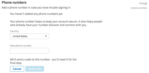Enter a phone number at which you can receive texts and click “Send code.” You may be prompted to enter your password first. Soon after you click, you’ll receive a text message with your verification code. Enter it and continue.