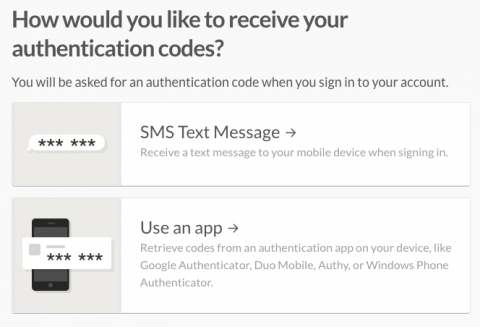 Now you can choose whether you’d like to receive verification codes via text messages or an authenticator app. Authenticator apps are more secure and avoid a lot of the downfalls of SMS. However, SMS is more practical if you do not use a smartphone. Consider your threat model and choose the best mode for you.