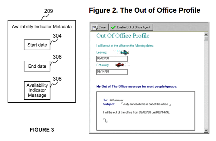 The ’842 Patent describes technology that would have been stupefyingly mundane to a 2010 reader. A user inputs “availability data” such as a “start date, an end date and at least one availability indicator message.” The system then uses this data to send out-of-office messages. The only arguably new feature it claims is automatically notifying correspondents a few days before a vacation so that they can prepare in advance for a coworker’s absence. From a technological perspective, this is a trivial change to existing systems. Indeed, it is like asking for a patent on the idea of sending a postcard, not from a vacation, but to let someone know you will go on a vacation.