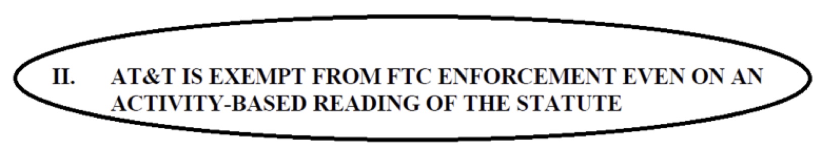 In essence, there is no need to pass a state law because the Federal Trade Commission can enforce the law on us. But what exactly is AT&T saying about the FTC’s enforcement power in the courts?