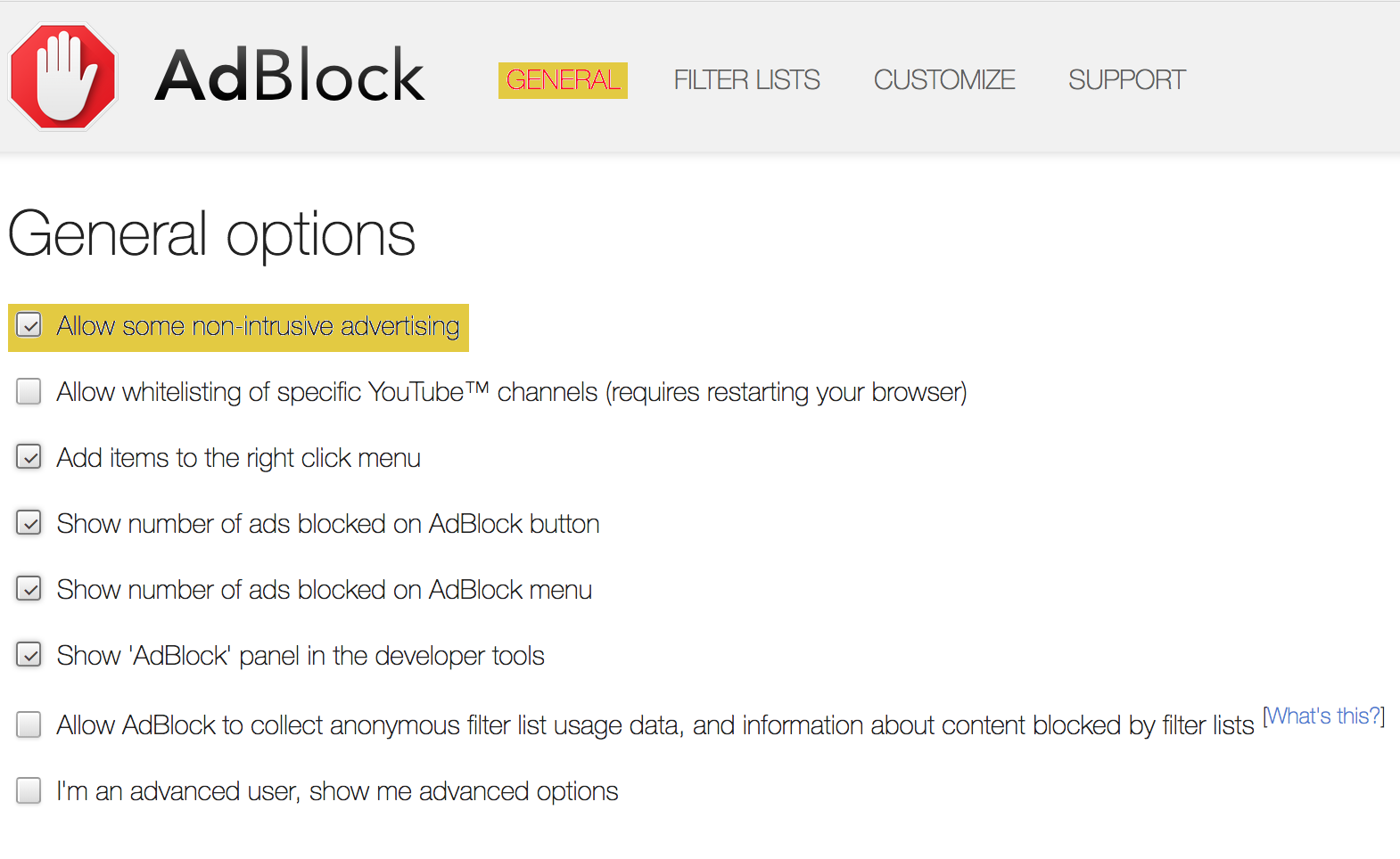 2. The first box is Allow some non-intrusive advertising. We want to uncheck this.