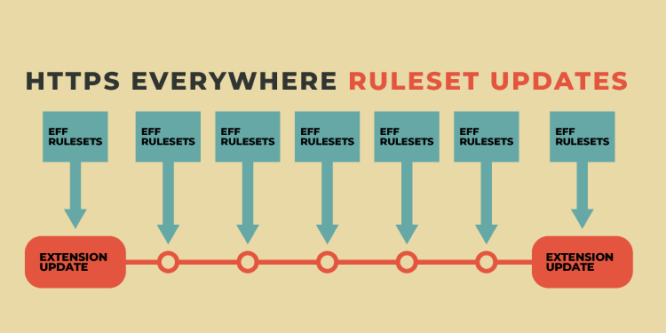 Ordinarily, we'll deliver this ruleset list bundled with the extension when you install or update it. But it's a lot of work to release a new version just to deliver a new list of rulesets to you! So we've modified the extension to periodically check in with EFF to see if a new list is available. That way you'll get the newest ruleset list in a timely manner, without having to wait for a new version to be released. In order to verify that these are the authentic EFF rulesets, we've signed them so that your browser can check that they're legitimate, using the Web Crypto API. We've also made it easy for developers and third parties to publish their own rulesets, signed with their own key, and build that into a custom-made edition of HTTPS Everywhere. We've called these "update channels," and the extension is capable of digesting multiple update channels at the same time.