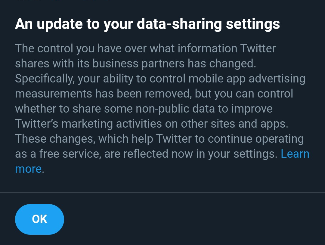 That leads us to today. Twitter apparently was happy to let users opt out as long as ad spending continued to grow. But last year, the privacy bugs and subsequent fixes seem to have shown Twitter exactly how much privacy options were costing it. Now, Twitter has removed the ability to opt out of conversion tracking altogether.