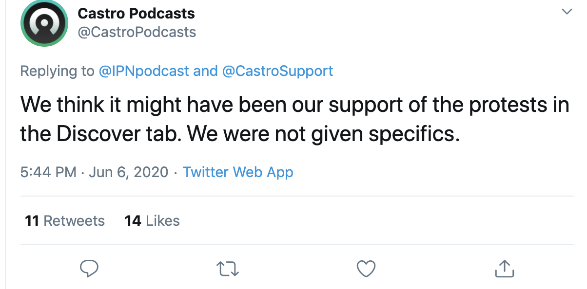 Apple’s policies are opaque, arbitrarily applied, and byzantine. The company prioritizes their own apps in search results, a Wall Street Journal analysis found, so that users searching for “music, “audiobooks,” or other categories will be shunted toward Apple products. Apple has also restricted and removed apps designed to help families limit the amount of time they spend using Apple products, according to an analysis by the New York Times and Sensor Tower. Apple also has a history of censoring apps in country-specific App Stores, including removing Chinese language podcasts from China’s App Store. More recently, two podcasting apps were removed from China's App Store. The creators of one of those apps said, “The very small amount of warning we were given between there being a problem, and our app being completely removed from the Chinese app store was quite alarming.”