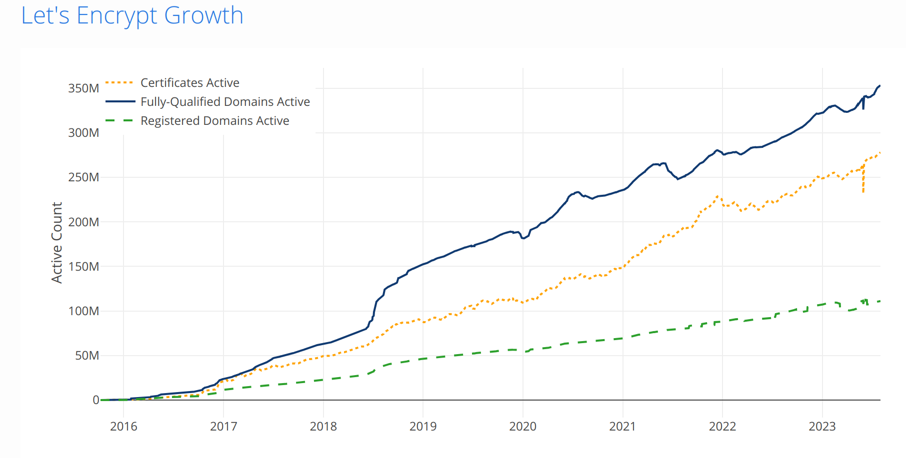In the time since, Let’s Encrypt and Certbot have been a huge success, with over 250 million active certificates protecting hundreds of millions of websites.