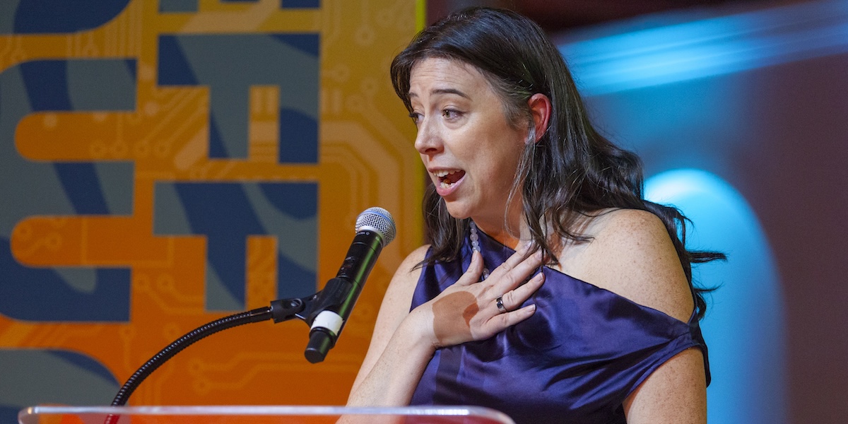 Erie Meyer accepts the EFF Award for Protecting Americans’ Data