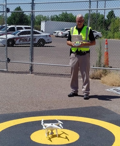 The New Mexico State Police, a statewide organization, also uses drones to assist in SWAT operations and to document crime and crash scenes. According to the agency’s recruitment page on Facebook, the drones are equipped with photogrammetry to create a three-dimensional model of a crash scene, high-definition lenses, and FLIR thermal imagery.