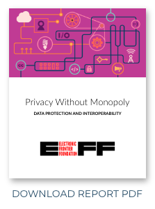 This whitepaper outlines some EFF proposals to promote competition and innovation through interoperability. It addresses the privacy risks of these proposals and discusses how we can mitigate them and shows why, despite some new risks, interoperability-positive policy does not have to come at the cost of user privacy. Done right, interoperability can actually protect privacy by making it easier for users to control who has their data and how it is used.